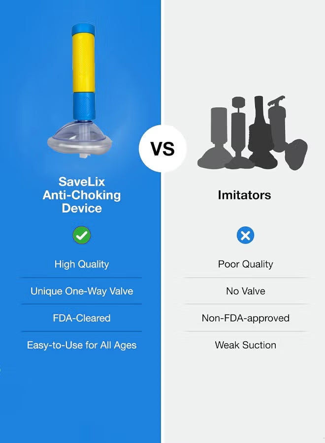 Designed to deliver rapid suction, this device helps clear airway obstructions quickly during choking emergencies for adults and children.